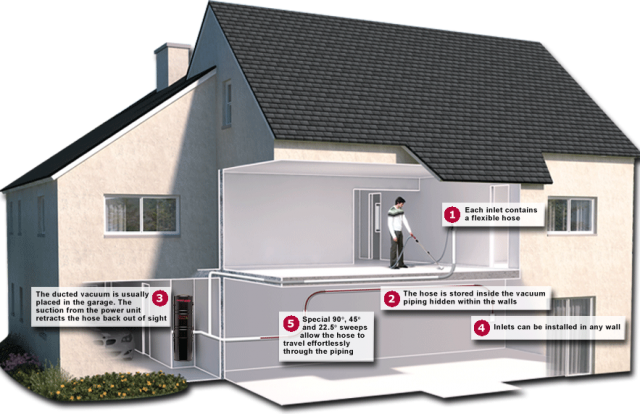 When you are finished, the hose retracts very quickly, due to the exceptional power of your Premier Clean Ducted Vacuum. The hose is drawn into a piping system, installed within the walls of your home.
