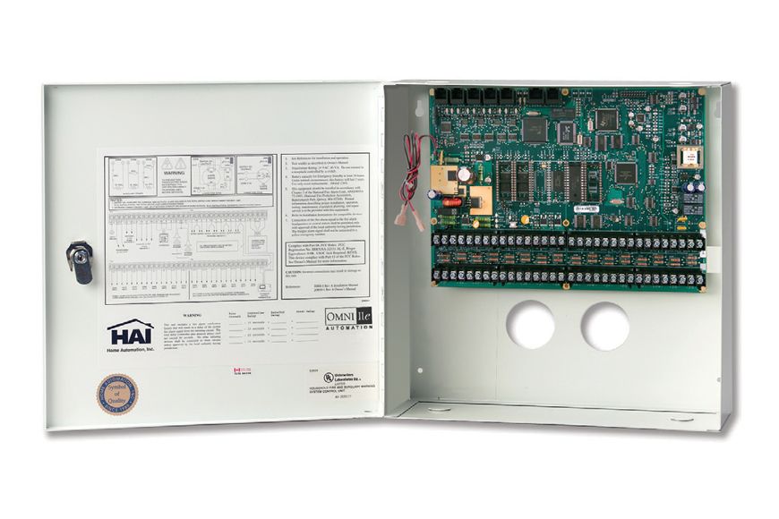 The Leviton OmniPro II is HAI’s flagship home control and security system. It has the largest feature set and can control the maximum number of devices. It is designed for large residences and commercial installations.